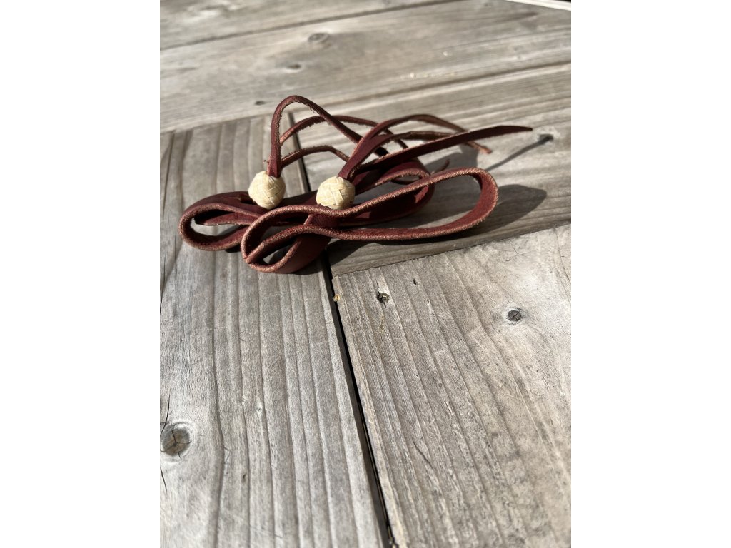 We recommend leather rein connectors be use dat some point between the reins and the bit. This provides a place where the reins can break free if were to ever get caught on something like a fence post, tree branch or a cow’s horn. They also make it easy to disconnect your rawhide reins from the bit so you can hang them straight when you are finished riding to prevent them from getting a permanent bend in them.